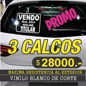 Vendo Cartel Auto Vinilo blanco X 3 unidades IMPRESO EN OPP