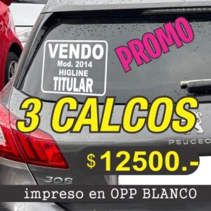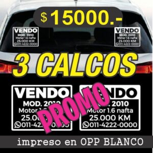 Vendo Cartel Auto Vinilo blanco X 3 unidades IMPRESO EN OPP